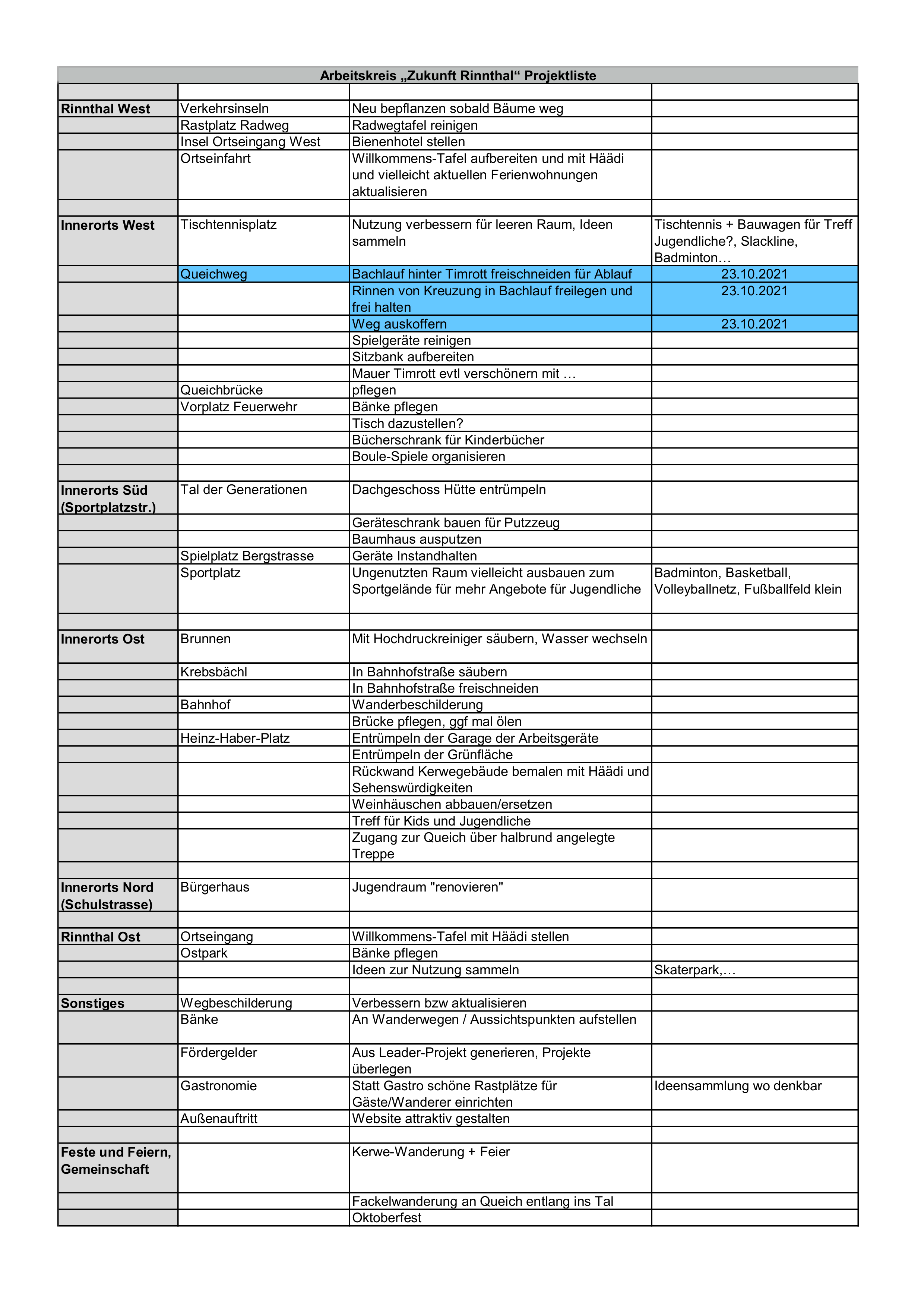 Die heutigen Abteilungen des Tumvereins Rinnthal:
